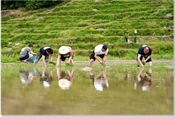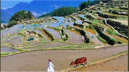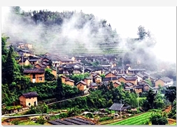 坑根村是一座坐落于峽谷之中的古村落,有著“千年歷史、千米落差、千層梯田”之稱,四周環繞著連綿起伏的山巒和茂密的森林。層層疊疊的梯田從山腳盤繞而上,鑲嵌于崇山峻嶺間,氣勢磅礴。同時也是一個天然的大氧吧。