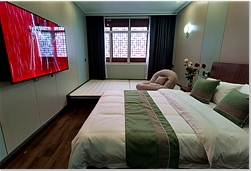 民宿內有上下兩層客房。一樓有7間普通客房,配備中央空調、24小時熱水、高速wifi全覆蓋。二樓有浣溪、竹海、星羅、踏雪、邀月、依山等高檔套房,全新升級并配備茶幾、沙發、干濕分離衛浴。其中“依山”套房還內置浴缸和按摩椅。內設設有餐廳、書吧、咖啡、茶室、棋牌、戶外休閑場地等,可在大堂吧品茶,放松身心。